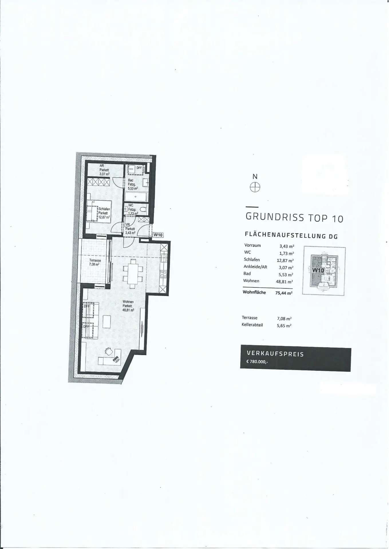 Diese 2-Zimmerwohnung liegt Dachgeschoss. Die ca. 75 m2 Wohnfläche sind wohldurchdacht angelegt und haben mit Schlafzimmer, Ankleide/Abstellraum, Bad, WC, Vorraum sowie dem ca. 49 m2 großen Wohn/Ess/Kochbereich alles im Programm, was gutes Wohnen ausmacht. Große Fenster sorgen für eine natürliche und angenehme Wohnatmosphäre. Und wer eine Auszeit unter freiem Himmel genießen möchte, kann sich auf der eigenen Terrasse entspannt zurücklehnen. Zum Wohnpaket gehören auch Kellerabteil und Freistellplatz. Die Kosten pro Stellplatz betragen € 20.000,-. Dieses innovative Wohnkonzept überzeugt auf ganzer Linie mit perfekter Raumaufteilung und hohem Wohnkomfort.